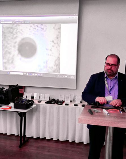 Our presentation led the audience through the fundamentals of optical fiber technology, followed by a live demonstration of optical connector ferrule inspection using a VIAVI microscope. We then showcased real-world products supplied by Foss for demanding broadcast applications.